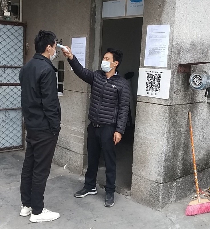 各企业在门岗等处设置体温检测点,把好第一关,对入楼及入厂人员进行体温检测和咳嗽观察,并对所有入厂人员进行登记。
